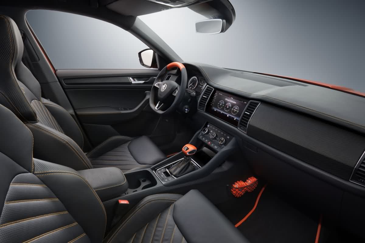 Auch der Innenraum des Mountiaq wurde von den Schülern stark überarbeitet. So glänzt das überwiegend in schwarz gehaltene Interieur (mit Lederausstattung) mit einigen Akzenten, die in dem leuchtenden Orange der Außenlackierung gehalten wurden. Des Weiteren findet man Details wie: ein leuchtendes Skoda-Logo am Dachhimmel, einen kleinen eingebauten Kühlschrank, zwei Walkie-Talkies, ein erweitertes „Columbus“-Entertainmentsystem sowie ein spezielles Soundsystem inklusive 320-Watt-Lautsprecher, 2.000-Watt-Verstärker und 2.000-Watt-Subwoofer.